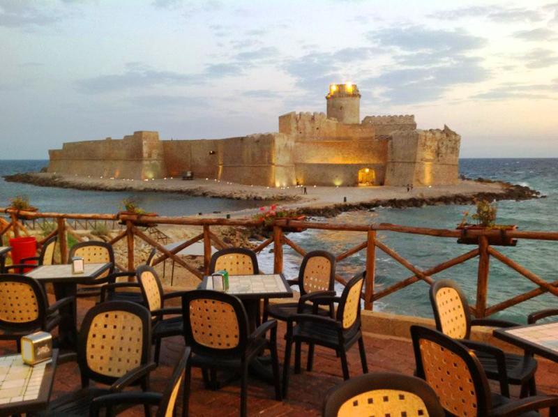 La prima e più successiva immagine di questo luogo così caratteristico è sicuramente la terrazza che da sulla Fortezza, un meraviglioso Castello Aragonese ubicato su un isolotto nella riserva marittima protetta di Isola Capo Rizzuto, davanti al centro del paese. Il Castello è stato quasi interamente restaurato ed è possibile visitarlo (fra l’altro la spesa per il biglietto di ingresso è veramente irrisoria, 3 euro).