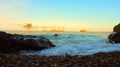 Arrivati a Punta Aderci il panorama regala un’emozionante vista sulle scogliere e, in mezzo al mare, compare un antico trabocco, di cui in realtà Vasto è ricca. I trabocchi sono le antiche macchine da pesca, molte delle quali sono adibite oggi a ristoranti dove è possibile gustare tipicità marinare abruzzesi, sospesi sul mare.