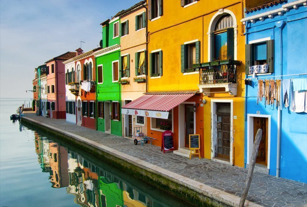Per gli appassionati di fotografia Burano è una mèta da non perdere anche per un altro motivo: le case dei pescatori sono in tutti i colori dell’arcobaleno e oltre. Così a una casa giallo zafferano ne fa seguito una rosso ciliegia e, ancora, una di un bel malva o di un verde menta. Insomma, una sessione di cromoterapia mentre si passeggia. Se siete, poi, golosi non dovete dimenticare di gustare i “buranelli” (o “bussolà”), tipici dolci con burro, uova , farina e aromatizzati alla vaniglia, rum o limone.