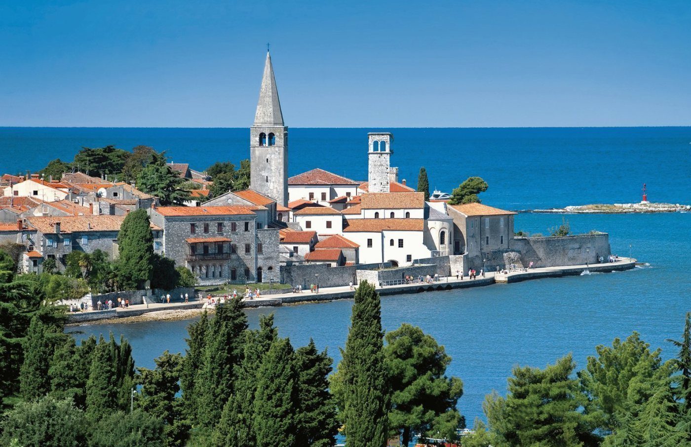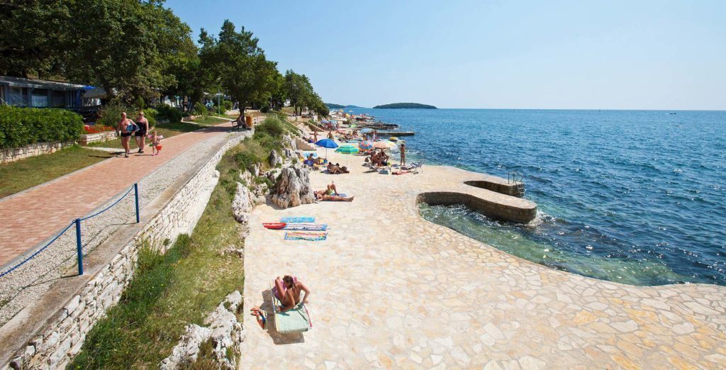 Il borgo di Porec è collegato alla Laguna con una bellissima passeggiata di circa 4km sotto una fresca e ombrosa pineta oppure con un comodo trenino turistico. Lungo tutta la passeggiata sono presenti attrezzi per mantenersi in forma, scivoli d’acqua, punti noleggio per canoe, biciclette e lettini per prendere il sole.