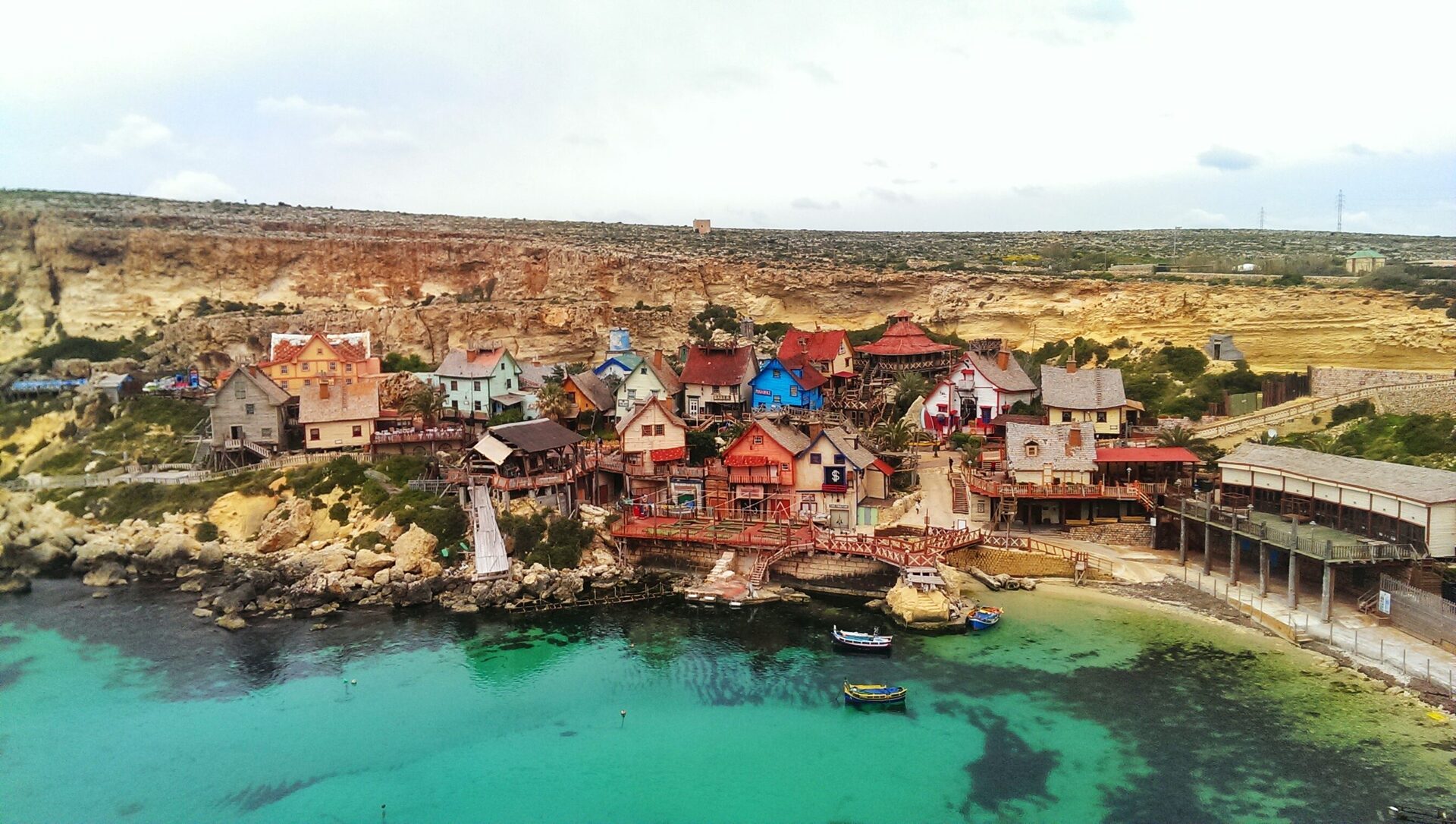 Il Villaggio di Popeye è stato creato come set cinematografico, in occasione delle riprese del film Disney nel 1979 del film Popeye-Braccio di Ferro (film uscito poi nel 1980) con Robin Williams nella baia di Anchor, anche chiamato Sweethaven Village. Vennero costruite 19 casette di legno tutte colorate, 19 casette che ancora oggi sono tutte visitabili all’interno del villaggio di Malta.
