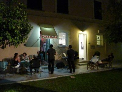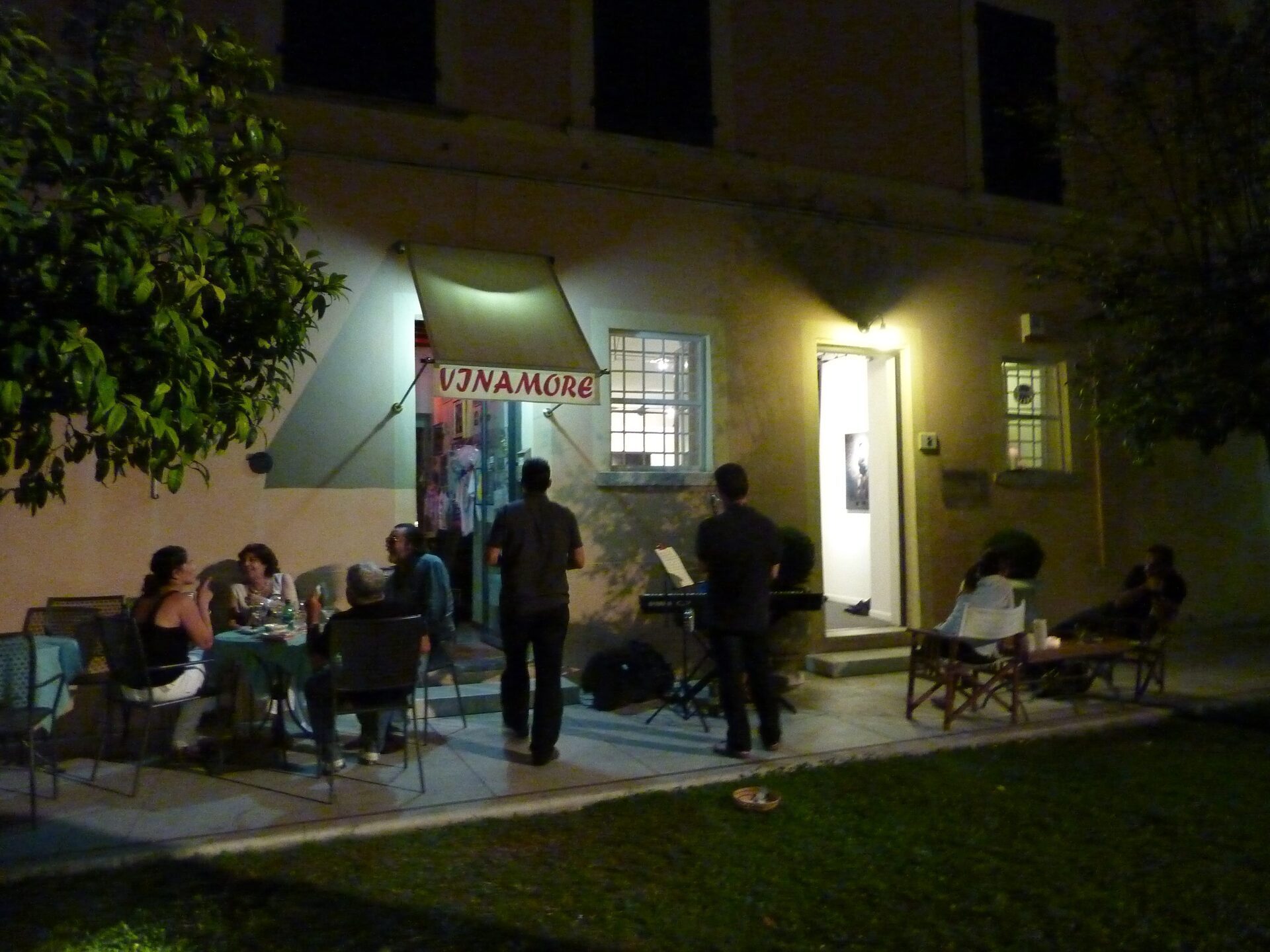 Per l’aperitivo, oltre a una buona scelta di vini, viene offerto un panierino con pane brutto (tipico versiliese), salumi e formaggi a 2.50 €. A disposizione degli ospiti, un pianoforte per i musicisti e tanti giochi da tavolo. D’estate i tavolini all’aperto sono ideali anche per una bevuta serale in tranquillità, lontano dal caos del centro. Il giardinetto si presta anche per concerti: sorseggiando il mio chinotto, ho potuto assistere a un piacevole spettacolino di un trio jazz. Un posto da consigliare, soprattutto a coppie amanti del vino.