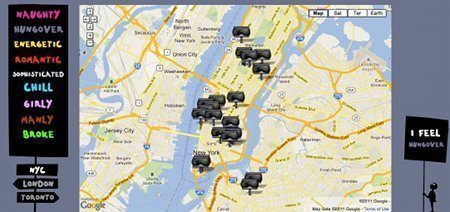 All’interno del sito 3 mappe relative a 3 città, Londra, Toronto e New York. Selezionate la città che volete visitare e di conseguenza sul menù di sinistra troverete degli stati d’animo da indicare. Tra questi virile, romantico, capriccioso, energetico e tanti altri. Scelto il vostro umore la mappa si aprirà e potrete all’interno scorgere grazie a dei piccoli simboli i locali, pubs e negozi consigliati per il vostro tour.