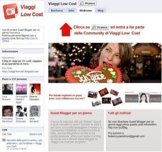 È online da due giorni la nuova facebook fan page di Viaggi low Cost, per ora tendo ad incentivare il Guest Post come si vede nella landing page della pagina, ma più avanti, almeno dopo Natale e dopo i mercatini, si cambia. Stay Tuned.