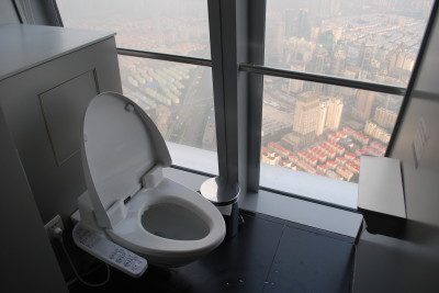 WC hi-tech: trovato nel bagno del Shanghai World Financial Center, il grattacielo più alto della città, è un vero e proprio rompicapo. A fianco della tavoletta c’è un display con telecomando che dovrebbe attivare varie funzioni misteriose, spruzzi e zampilli non meglio identificabili poichè le legende esplicative sono in cinese. Per evitare strane sorprese ho premuto solo il tasto dello sciacquone, l’unico ben riconoscibile.