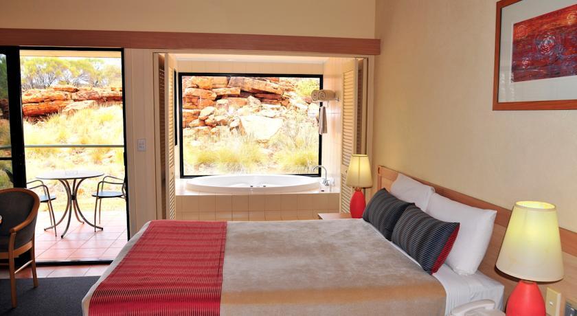 Senza internet né telefono, come feci io (c’era solo il telefono dell’hotel per le emergenze). Il Kings Canyon Resort è un hotel fatto di piccoli bungalow, camere con bagno e vasca “con vista” e una sala colazione posta nel ristorantino del luogo. Praticamente in mezzo alla strada con intorno il nulla.