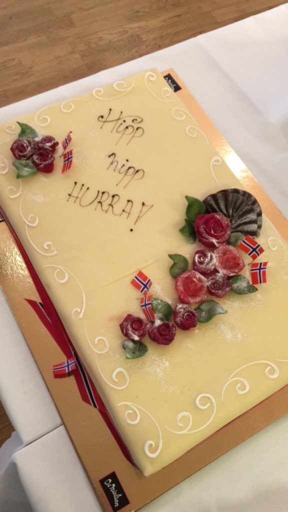 L’ascensore arriva a tutti i piani, mentre la sala colazione, molto grande, si trova al primo piano. Nella sala colazione, una grandissima verità di pesce e salmone attendono tutti gli ospiti, oltre a torte e biscotti dolci, frutta fresca, succhi di frutta, cereali e latte per grandi e bambini. Il primo giorno, la colazione del nostro arrivo aveva anche una grande torta con sopra la bandiera della Norvegia, perché come detto si festeggiava il giorno della Norvegia. Un bellissimo benvenuto che ci ha fatto sorridere e ci ha accolto divinamente.