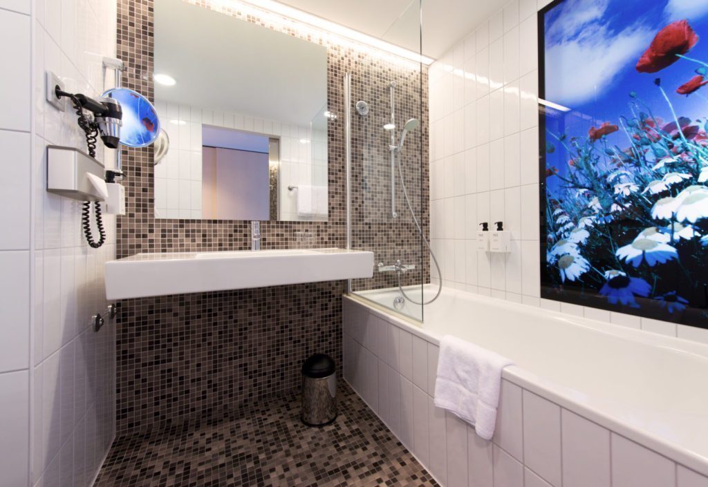 Il palazzo – come la maggior parte degli edifici della zona – è di costruzione recente e ospita i dieci piani dell’albergo. Le stanze sono spaziose, luminose e pulite, in perfetto stile nordico.