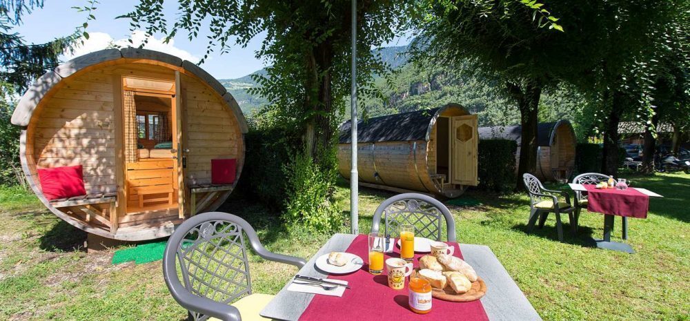Preparate valigia e pigiama, vi porto a scoprire le botti del Camping Steiner nelle quali è possibile trascorrere una notte indimenticabile.