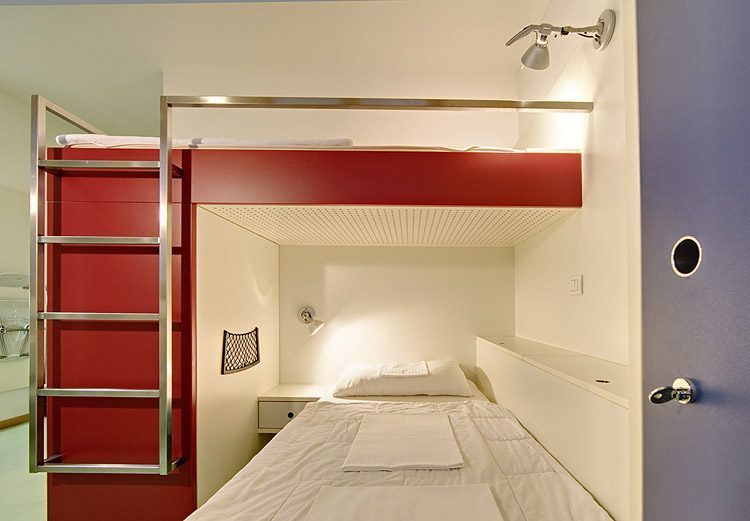 L’ostello dispone solo di camere singole (che vanno sempre a ruba) e quadruple che hanno un costo rispettivamente di 28€ e 21,5 euro per notte. Anche nelle camere quadruple, la disposizione dei letti è tale da pemettere un pò di privacy per gli ospiti e di solito ogni camera è dotata di un doppio servizio.