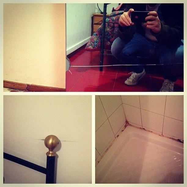 Dopo il trasferimento nella “nuova” camera ci siamo accorti che era leggermente più accogliente anche se ancora sporca. La finestra della nostra camera era sulla cucina, ma va bene…anzi sarebbe andato bene se la camera fosse stata pulita, e invece. Gli asciugamani erano rotti (ROTTI!), macchie indefinite su copriletti e lenzuola, peli e capelli nelle lenzuola, noi abbiamo dormito senza -.- insomma un incubo. Inoltre l’hotel aveva le pareti di carta, si sentiva il signore della stanza vicino russare e la mattina siamo stati svegliati dalle tazze della cucina.