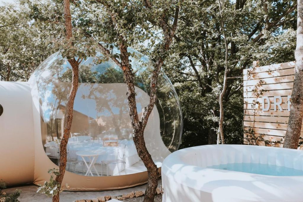 Le Presiedi è il primo bubble glamping del Lazio, nella zona di Viterbo, che permette a chi lo voglia di dormire in una bolla e “all’aria aperta”. Nato dall’idea di due fratelli che se ne sono innamorati qualche anno fa, dopo aver visto il progetto in Francia. Una curiosità, il nome Le Presiedi è il nome scientifico delle stelle cadenti e così le “bolle”, che sono quattro in totale, prendono il nome di Mercurius, Venus e Mars, camere standard con letto a baldacchino e bagno privato, e Sol, la bubble suite con vasca.