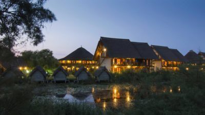 Legno e paglia sono i materiali principali e il resort, diviso in diversi spazi, è immerso in un giardino, all’interno del quale c’è anche un bucolico laghetto.
