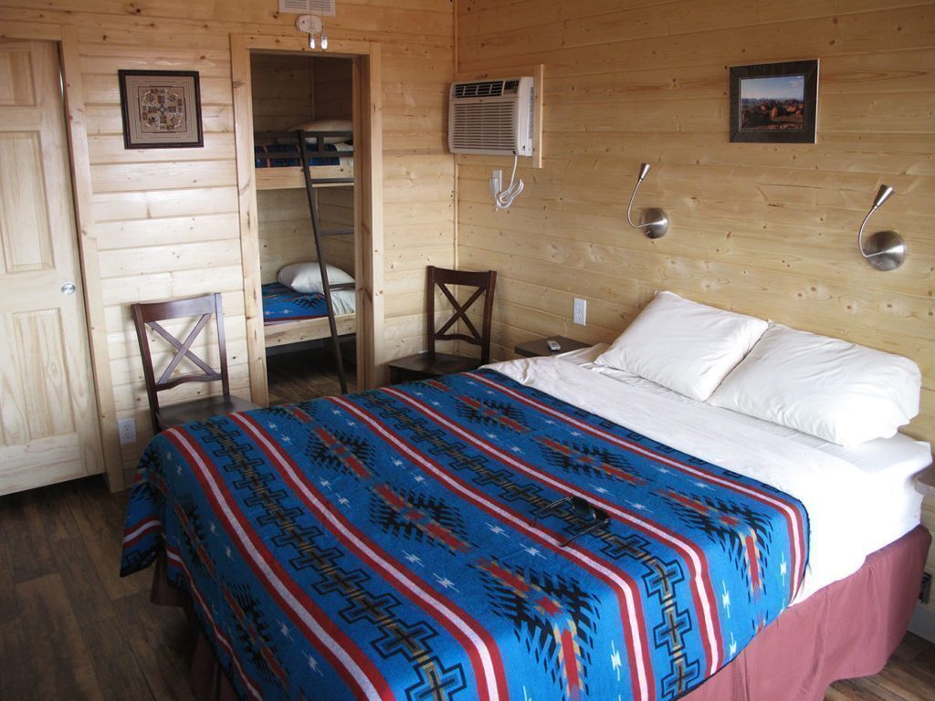 Di diverse dimensioni (in base al numero di ospiti che vi possono soggiornare) ogni casetta è dotata di bagno, angolo cottura con macchina del caffè, frigorifero e microonde e wi-fi. Sono arredate con qualche dettaglio che richiama lo stile navajo, come le coperte poste sui letti. Ma soprattutto ogni cabin ha una vetrata enorme e un balconcino da cui poter godere del fantastico panorama rosso fuoco anche standosene direttamente a letto. Svegliarsi qui per vedere l’alba e poter uscire e lanciarsi ancora in pigiama “into the wild” è qualcosa di indescrivibile.