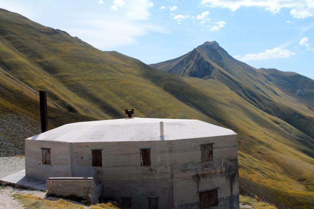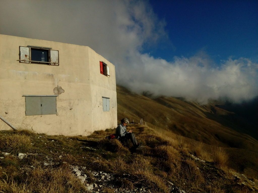 Qui a 1820 metri s.l.m c’è il rifugio, un edificio tozzo e incapsulato nella roccia, che come un bunker si erge sulla forcella: controlla la valle da una parte, si affaccia sui monti dall’altra. È spazzato dal vento e dalla neve, infatti apre in maggio fino alla fine di ottobre, ma sempre tempo permettendo.