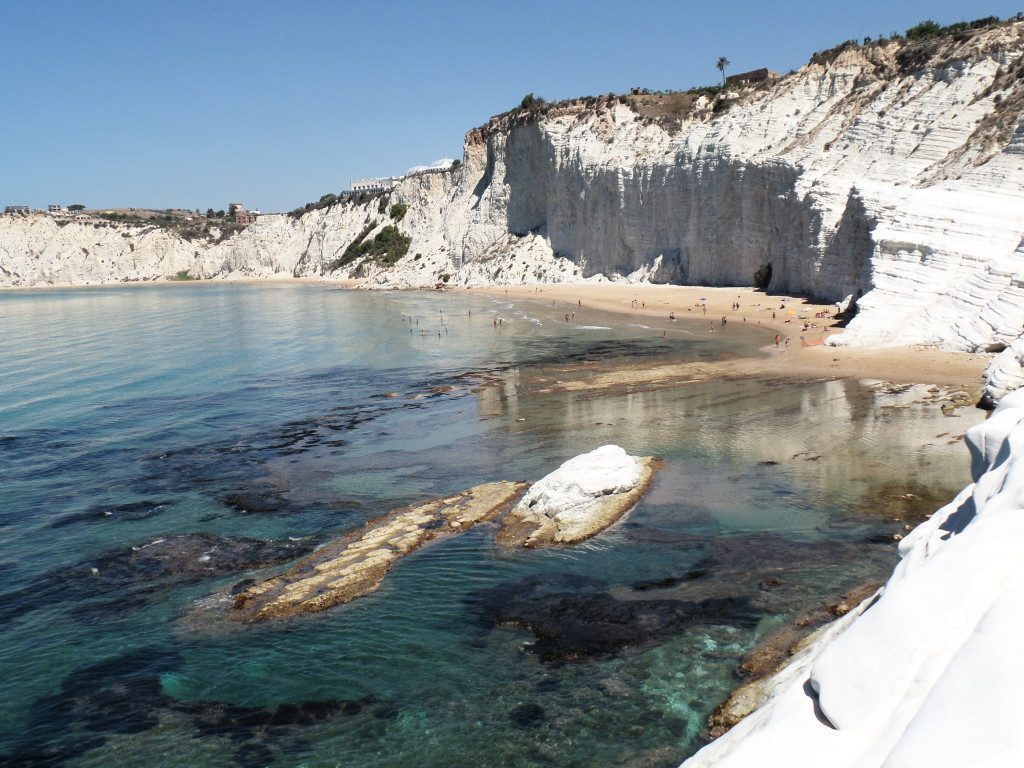 Se invece ci si dirige verso oriente, verso Agrigento, si trova una delle particolarità naturali più famose di Sicilia, cioè la Scala dei Turchi nel comune di Realmonte. Le caratteristiche geologiche sono le stesse di Capo Bianco, anche questa è una falesia di marna bianca, ma di una potenza e di una spettacolarità senza uguali. La roccia ha come dei gradoni che la fanno assomigliare ad una scalinata; è accecante nel suo candore e contrasta molto con il mare. A piedi, con un po’ di abilità, si può superare lo sperone di roccia e scendere alla larga spiaggia di sabbia che si trova fra il mare e la parete. Un luogo da non perdere, anche se molto frequentato dai turisti.