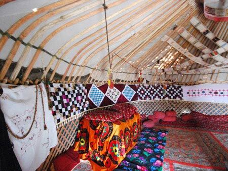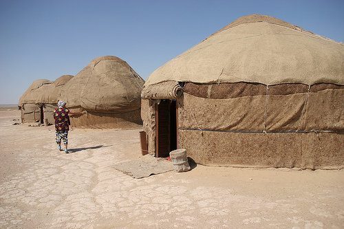 Le yurte sono le abitazioni tipiche dei nomadi dell’Asia Centrale, al campo di Ayaz-Kala ne trovate circa 7/8 e ognuna può ospitare da 4 a 6 persone, sono costruite con uno scheletro di legno e una copertura di tappeti di feltro.