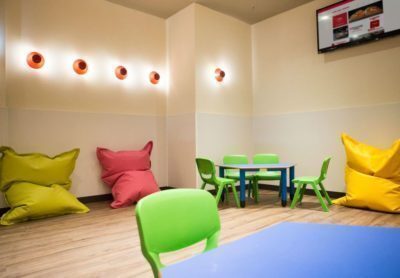 Cos’ha di diverso? Un’area giochi per bambini affinché i genitori possano sorvegliarli comodamente seduti mentre gustano dei deliziosi piatti. L’area dispone di giochi in legno che sembrano di un’altra epoca e due schermi touchscreen ad altezza di bimbo che contengono tantissime immagini da colorare che fanno esplodere l’immaginazione, basta solo selezionare l’età giusta e via. Inoltre, questo ristorante, che sembra il paradiso per i genitori, mette a disposizione un microonde per scaldare biberon e pappine e un menù per i più piccoli che include un primo piatto a scelta, bibita e dessert. Ad ogni bambino vengono consegnati pastelli a cera e disegni da colorare, palloncini o chupa-chups. Insomma, le sorprese non finiscono mai. I vostri pargoli non si annoieranno di certo e voi potrete finalmente terminare un piatto senza ascoltare le urla disperate del vostro bimbo che non vuole stare seduto.