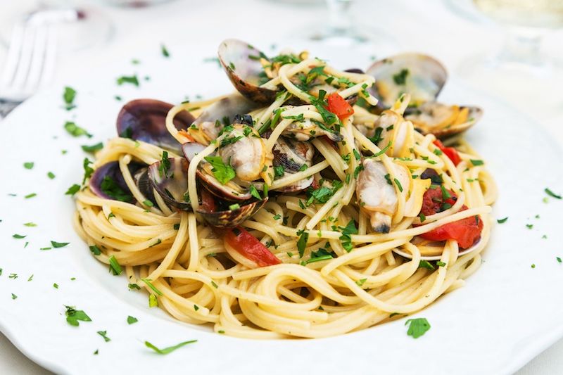 Il servizio è un pochino lento, ma niente di esagerato. I primi e i crudi di pesce sono invece eccezionali, e come potrebbe essere diversamente? Il primo di pesce con i ricci di mare che ho preso io era divino. Non sono riuscita nemmeno a fare la foto per quanto erano buoni. Ho invece fotografato l’altro piatto, gli spaghetti allo scoglio, deliziosi anche quelli.