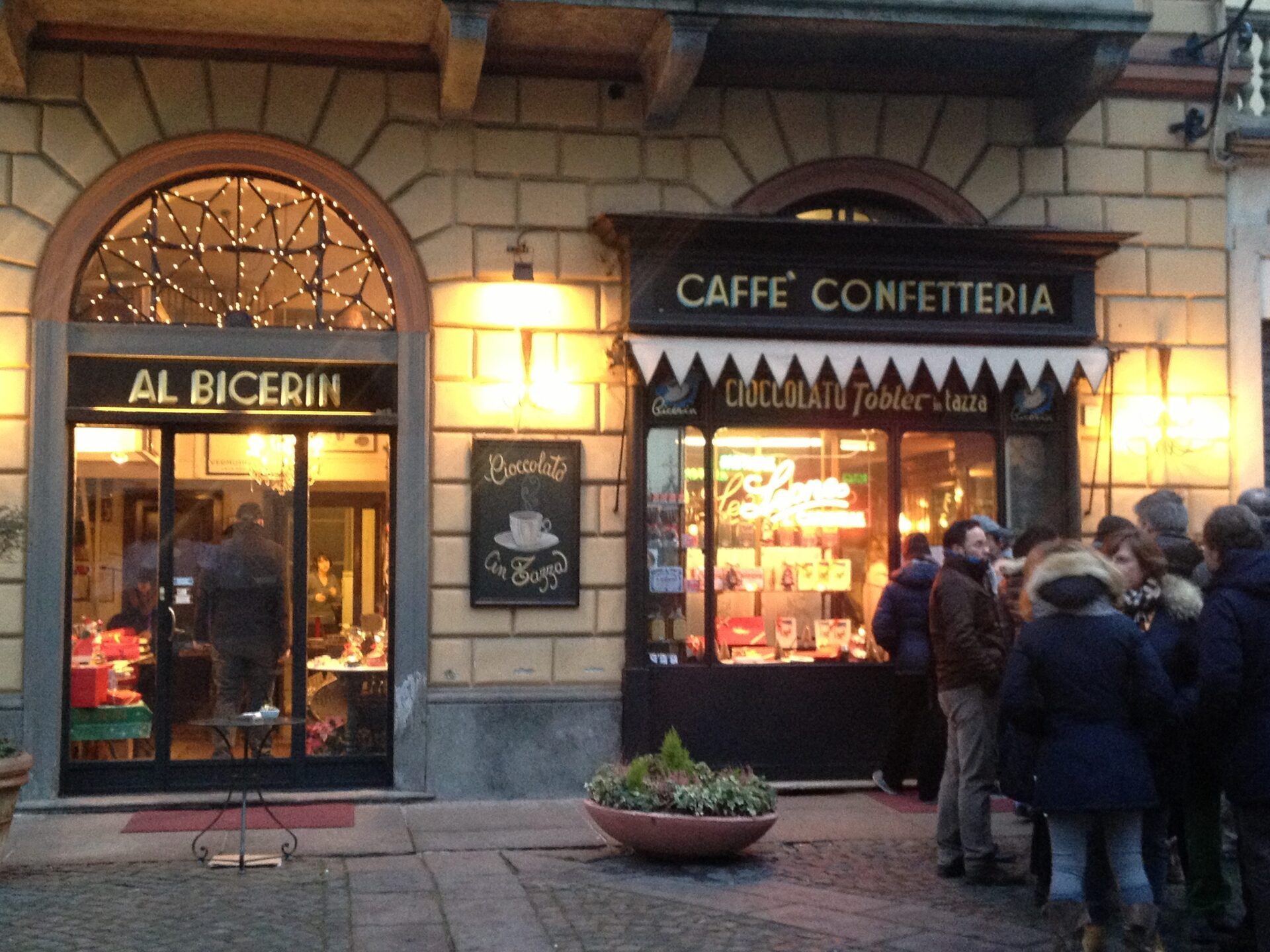 Il costo del bicerin è di 5€, no proprio come un caffè normale, ma in effetti di un caffè normale nn stiamo parlando. I diversi strati hanno anche diversa temperatura, per questo il consiglio è di girare tutto prima di bere, dal caffè che si deve fondere con il cioccolato e la crema di latte. Il locale è molto piccolo e purtroppo non è possibile prendere il caffè “al bancone”, ci si deve per forza sedere. Ora capirete il perché della gente nella foto, non sta facendo le chiacchiere nella piazzetta, ma è in fila :)