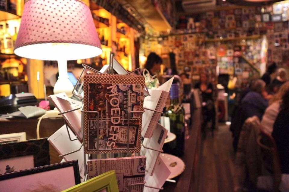 Ma veniamo alle cose importanti, perché mi è piaciuto così tanto questo ristorante, tanto da consigliarlo e recensirlo qui? Innanzitutto per la sua storia. Moeders significa mamma e il locale stesso è tappezzato di fotografie di mamme e di donne. Mamme con i propri figli e mamme con altre mamme, mamme con le amiche o mamme da sole. Dato che sono stata da Moeders durante il mio viaggio da sola con mio figlio, mi sembrava il locale giusto per l’ultima sera in Olanda. Il ristorante dicevo, è tappezzato di foto di donne, ma anche di bellissimi piatti, bicchieri e stoviglie, sedie… tutte diverse.