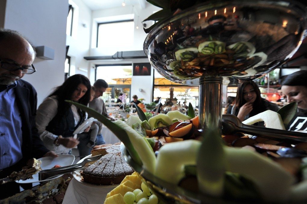 Io ho provato, come vi dicevo, l’aperitivo a buffet “all you can eat” al modico prezzo di € 10,50: la cifra comprende il buffet, la bibita piccola da 0,20 o acqua da 0,50 e un caffè. Il buffet è davvero ricco e sfizio, capace di accontentare tutti i gusti: molte le insalate fredde, come quelle di fagiolini e patate o quelle di pollo, ma c’è anche la possibilità di comporsi la propria insalata seguendo il gusto personale. Buoni anche i primi proposti: come la più tipica amatriciana, ma anche un primo di mare (al baccalà); tra i secondi invece pollo al forno con patate, salsiccia casereccia, salmone e tanti contorni (mozzarelle, verdure). Invitanti anche i tranci di pizza proposti nel buffet.
