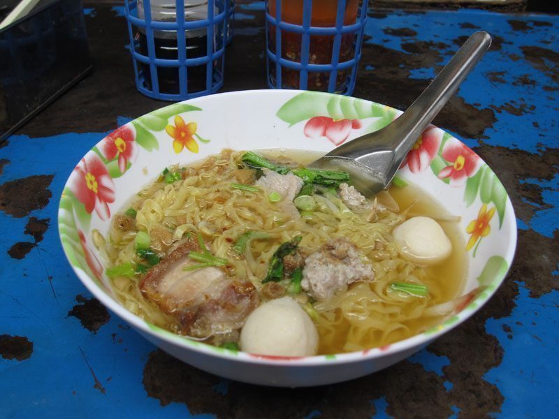 Quando viaggio e il mio stomaco si sente strapazzato, mi rifugio spesso nelle zuppe. Devo solo avere la fortuna di scegliere quella giusta! Così come per la variante dry, anche per le zuppe potrete sbizzarrirvi: innanzitutto il gestore del locale vi farà scegliere quale tipo di noodles preferite: quelli piatti e larghi a base di riso (sen yai), quelli tipo vermicelli dalla tipica forma ondulata (sen mii), quelli bianchi quasi trasparenti (wun sen), quelli sempre di riso ma più sottili (sen lek) e quelli a base di uovo (baa mii). Vi farà poi scegliere il brodo, se a base di carne rossa o di pollo, piccante o meno e che tipo di carne vorrete trovare nella zuppa, se pollo, manzo etc.