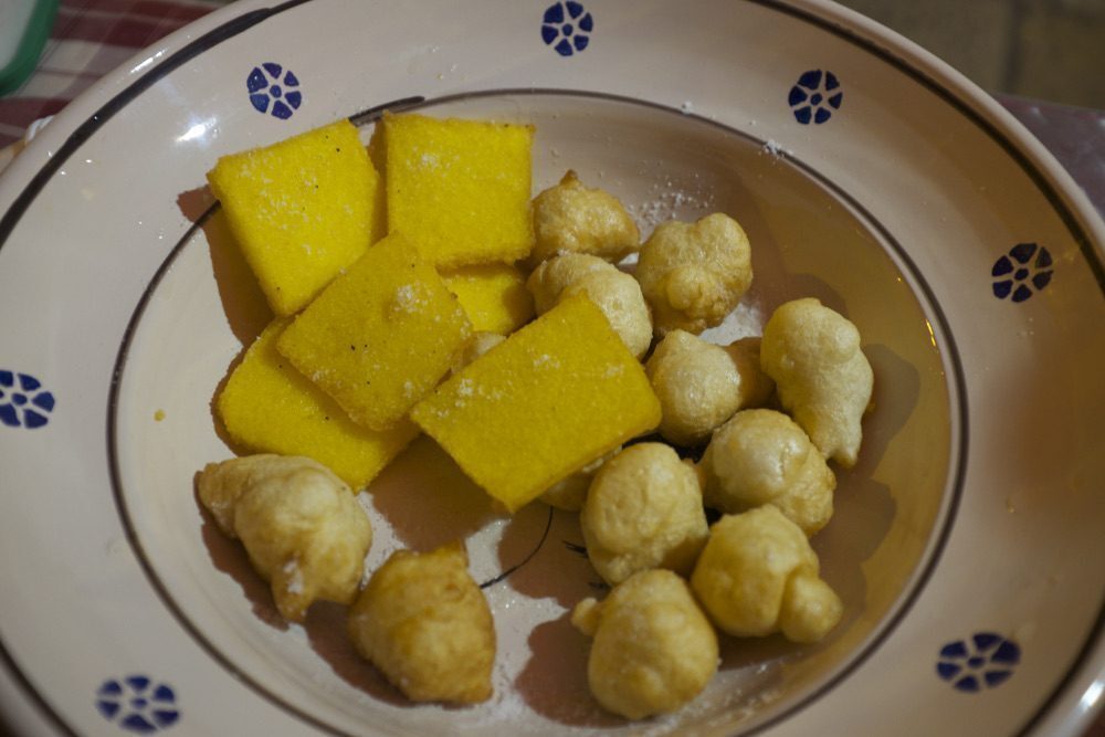 Buonissime e buonissime anche le popizze, anche se per me un pochino pesanti. Le popizze non sono altro che pasta fritta, salata anche in questo caso – ma c’è anche la versione dolce – che assomiglia a quelle che da me vengono chiamate le castagnole, dolce tipico di carnevale.