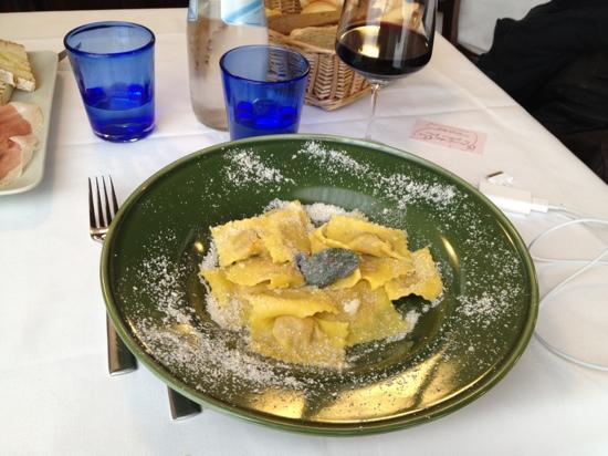 Il menù, a cui abbiamo comunque dato un’occhiata, è contenuto come numero di proposte, ma vario: alcuni piatti della tradizione, come i tortelli di zucca e il risotto con la salsiccia, ma anche altri più particolari, a cui si affiancano le proposte del giorno.