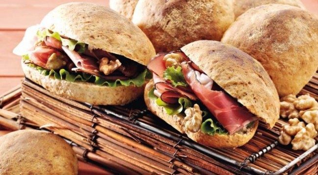 Svizioso e nutriente, il panino di segale con cetriolini, foglie di lattuga e speck, è la merenda ideale di ogni bolzanino dopo un’escursione in montagna. Lo speck è un tipo di prosciutto crudo leggermente affumicato e speziato prodotto nelle valli altotesine Venosta e Pusteria. E’ un affettato dal gusto inconfondibile e deciso ed oltre ad essere un must nella preparazione di sandwich è utilizzato per insaporire i primi piatti.