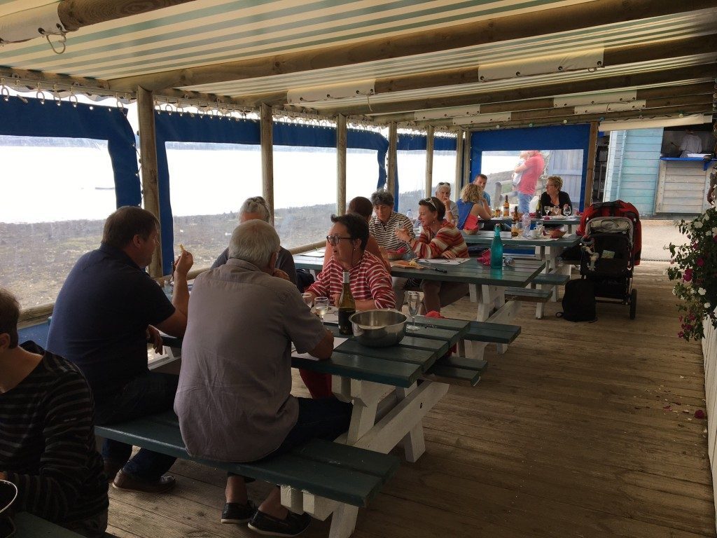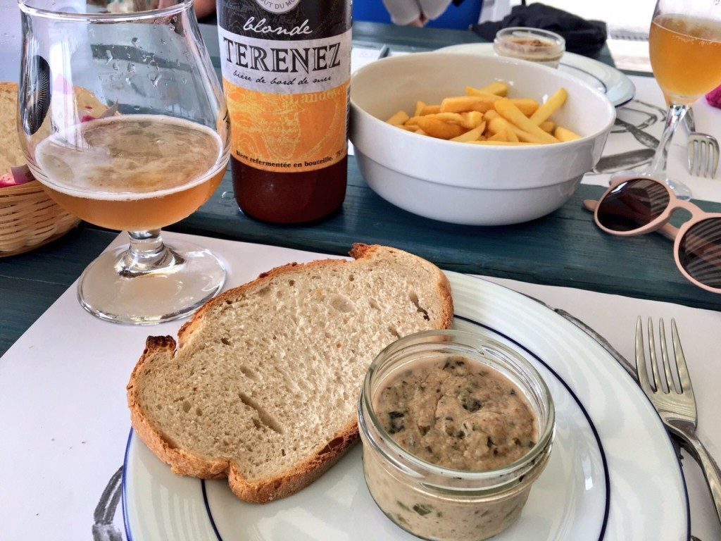 Dopo aver condiviso il nostro tavolo, poco male almeno vedevamo cosa prendevano gli altri amici francesi che ordinavano prima di noi, abbiamo iniziato a preparare il nostro pranzo. Ostriche ovviamente, una selezione di 12 ostriche medie, con limone e birra a doppia fermentazione fatta direttamente al Viviers de Terenez.