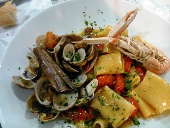 I Paccheri allo scoglio sono un’autentica delizia da guardare e da gustare, soprattutto se i paccheri (trafila speciale di pasta a forma di maccheroni giganti) sono quelli tipici di Gragnano. Anche qui ingredienti semplici: molluschi, frutti di mare quali vongole veraci, cozze e pomodorini. Questo piatto coniuga sapientemente tutto il sapore del pesce con la genuinità della pasta tipica campana.