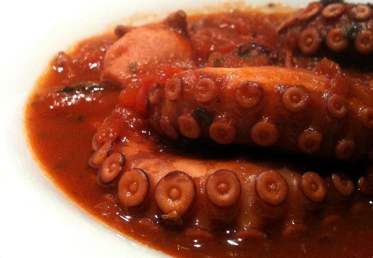 Il Polpo affogato presuppone già, dal nome evocativo, la presenza di un “generoso” e gustoso sughetto. Si prepara con un procedimento lungo e laborioso ma, il risultato finale assicura numerose richieste di bis! Il polpo è letteralmente affogato in un sugo di pomodoro che ne acquisisce tutti gli umori ed i colori. Una curiosità: durante la cottura del polpo si devono immergere nella casseruola due tappi di sughero. Incredibilmente la loro presenza garantisce delle carni morbidissime e dalla consistenza perfetta!