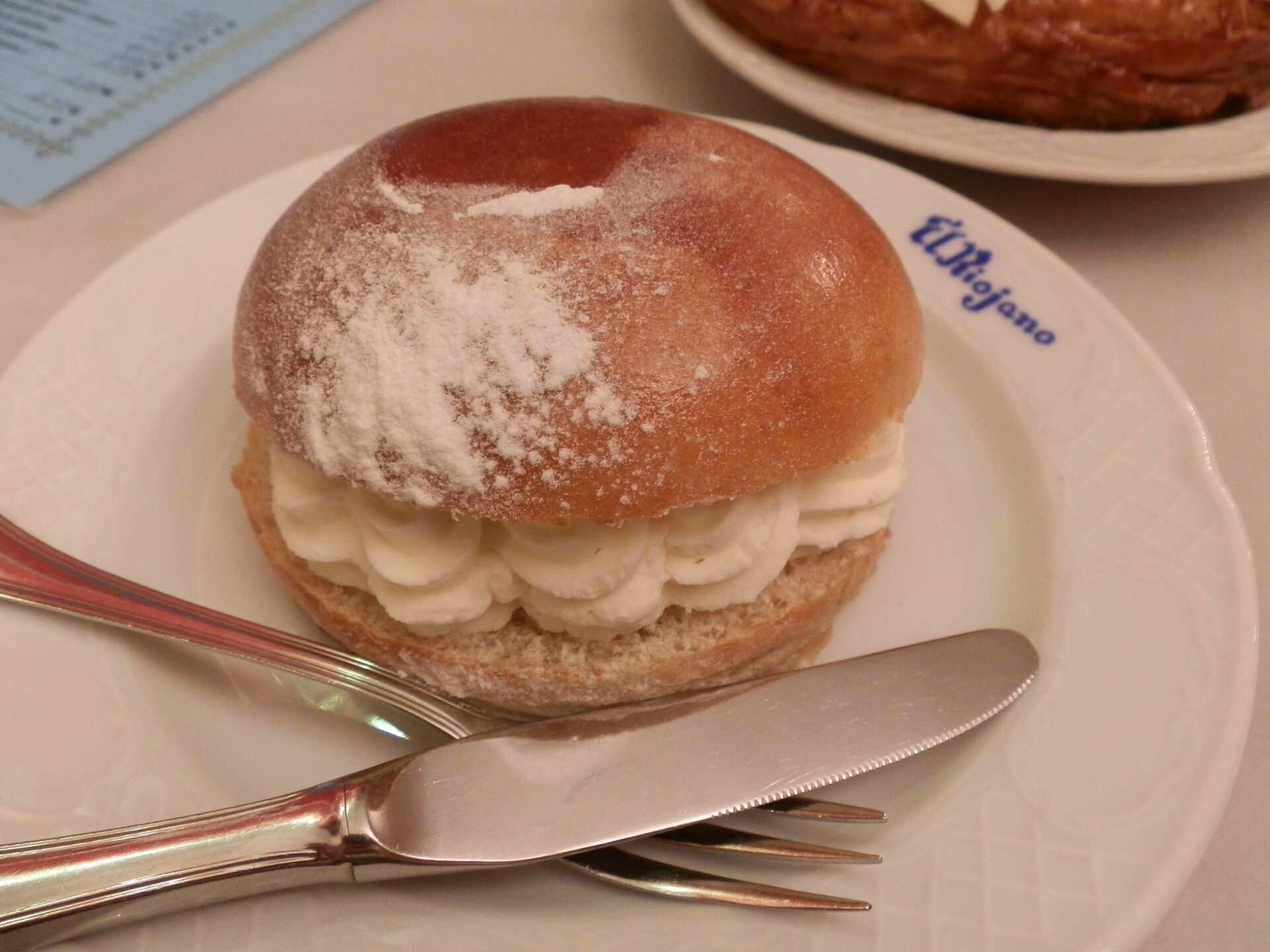 Passando tra un locale e l’altro che mi avevano consigliato ho notato la Pastelería El Riojano che si trova in Calle Mayor 10. Da fuori questa pasticceria sembra piuttosto piccola, con un punto vendita e basta. In realtà se si supera la porta all’interno si trova una vera e propria sala dove si ordina al tavolo e si sta comodamente seduti a gustarsi la colazione ^_^ Un paradiso.