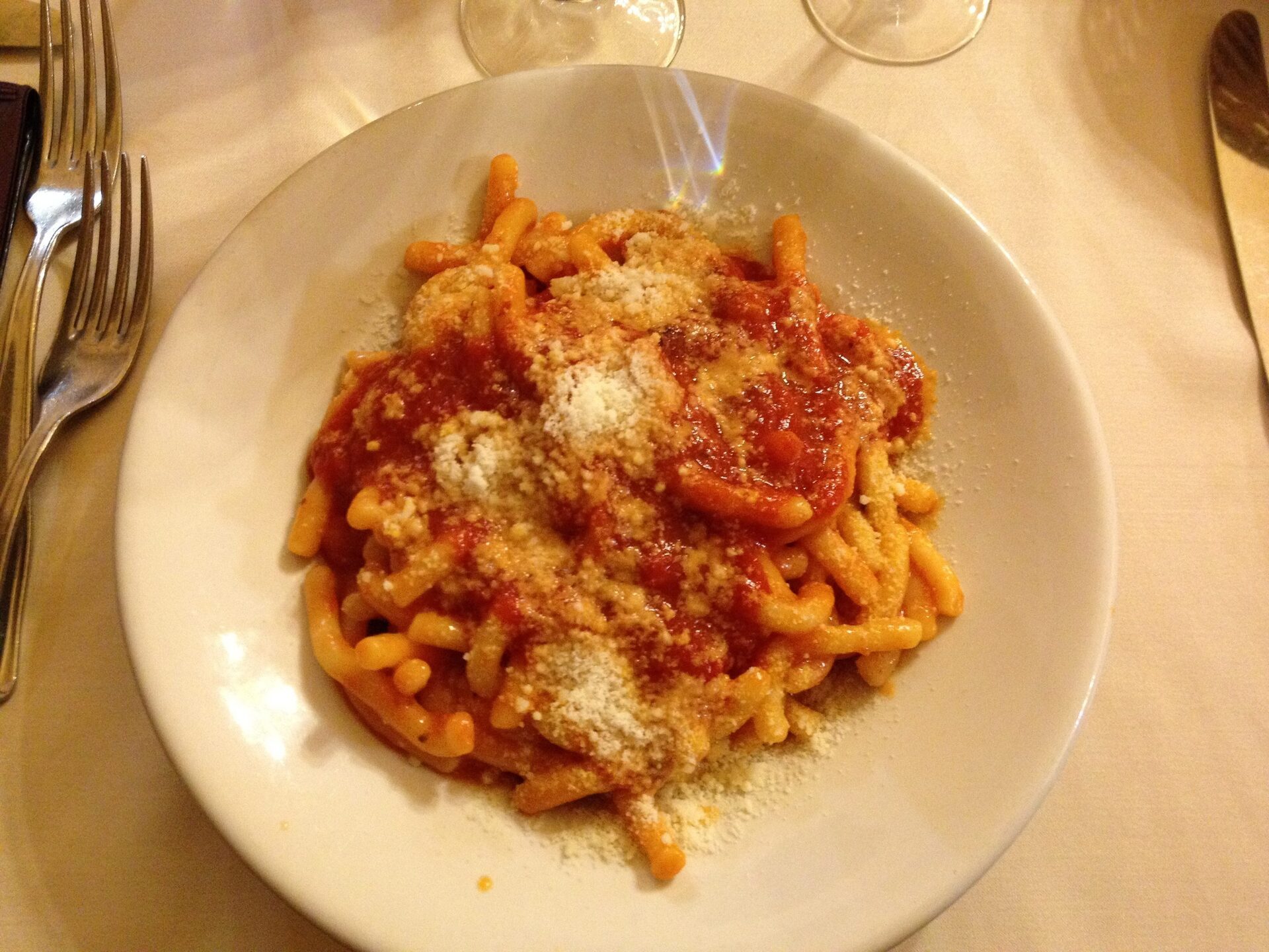 Aperto tutti i giorni a pranzo e a cena il menù è piuttosto ricco. Il piatto più tipico è di sicuro il Paglia e Fieno all’Alfredo, anche se io mi sono presa gli Strozzapreti all’arrabbiata. Non troppo piccanti anche se piuttosto buoni.