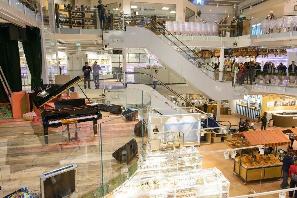 Nel grande spazio, disposto su tre livelli, è possibile acquistare prodotti e fermarsi a mangiare in uno dei tanti food corner della struttura. A piano terra oltre i carretti di frutta e verdura è possibile trovare utensili da cucina, libri e piccoli oggetti per la casa. Inoltre si trova una piadineria, il gelataio e una bellissima e invitante cascata di cioccolato che invoglia, anche i meno golosi, all’acquisto di praline e tavolette di ogni tipo e sapore.