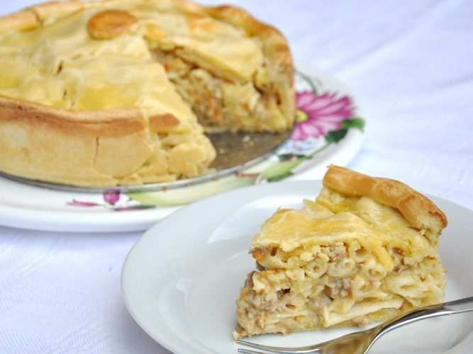 Il pasticcio ferrarese, di maccheroni, si compone di una crosta in pasta frolla, che racchiude come uno scrigno maccheroni, ragù, besciamella, funghi, tartufo e noce moscata. La combinazione di questi sapori, in origine tra loro piuttosto lontani, fa sì che ne esca un gusto davvero sorprendente, unico e (diciamolo!) davvero squisito. Solitamente il pasticcio viene cotto in appositi recipienti in rame, in forno.