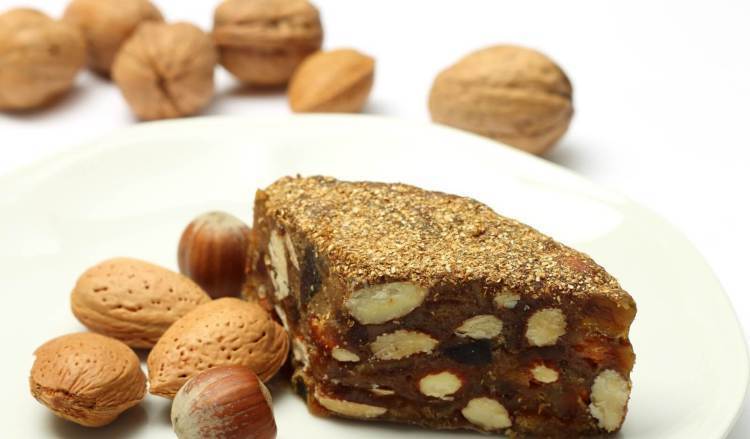 Il nostro breve elenco non poteva che terminare con un dolce, tipicamente natalizio (ma lo trovate tutto l’anno): il panpepato. Secondo l’antica tradizione, questo dolce veniva preparato dalle famiglie ferraresi nel mese di novembre, per essere poi consumato nel periodo di Natale. Forse originario dell’Oriente, importato nel Rinascimento dalle carovane che trasportavano spezie, questo dolce si compone di spezie macinate (da cui il nome), mandorle, noci, nocciole, canditi, arancia, cedro, uva passa, il tutto eventualmente (ma non necessariamente) mescolato a miele, cacao, caffè, liquore.