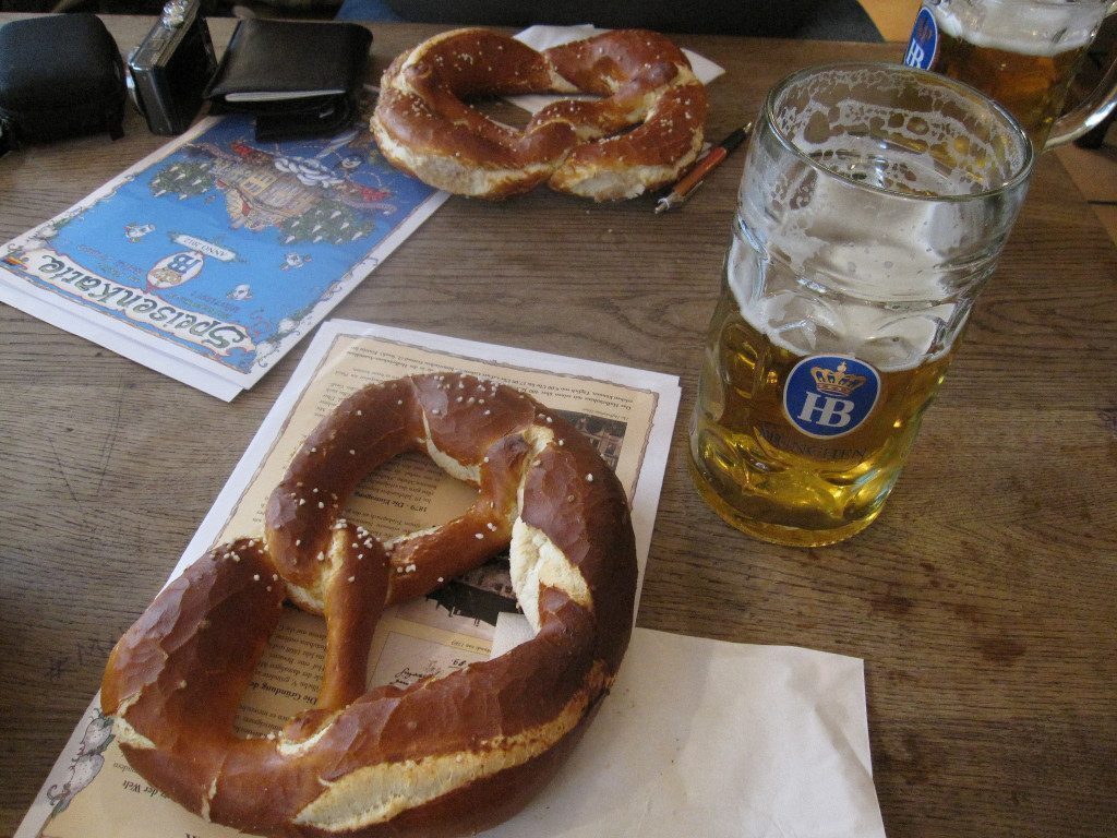 L’atmosfera è gioviale ma rilassata ed è possibile accompagnare la birra a varie portate. Altamente consigliati sono lo stinco di maiale (godurioso) servito con le immancabili patate e il bretzel, il pane più diffuso in Germania,scuro all’esterno, morbidissimo e aromatico all’interno, ricoperto di cristalli di sale grosso. Chicca di questa sala è una bacheca piena zeppa di boccali fissati alla stessa con un lucchetto: appartengono ai clienti abituali i quali, oltre al boccale privato, godono anche di sconti particolari. I menu sono in varie lingue,tra cui l’italiano, ed è possibile anche portarne via qualcuno con sé a mò di souvenir. I prezzi molto concorrenziali e l’alta qualità dei prodotti serviti dimostrano che lo Stato, quando vuole, sa come far volare la propria economia.
