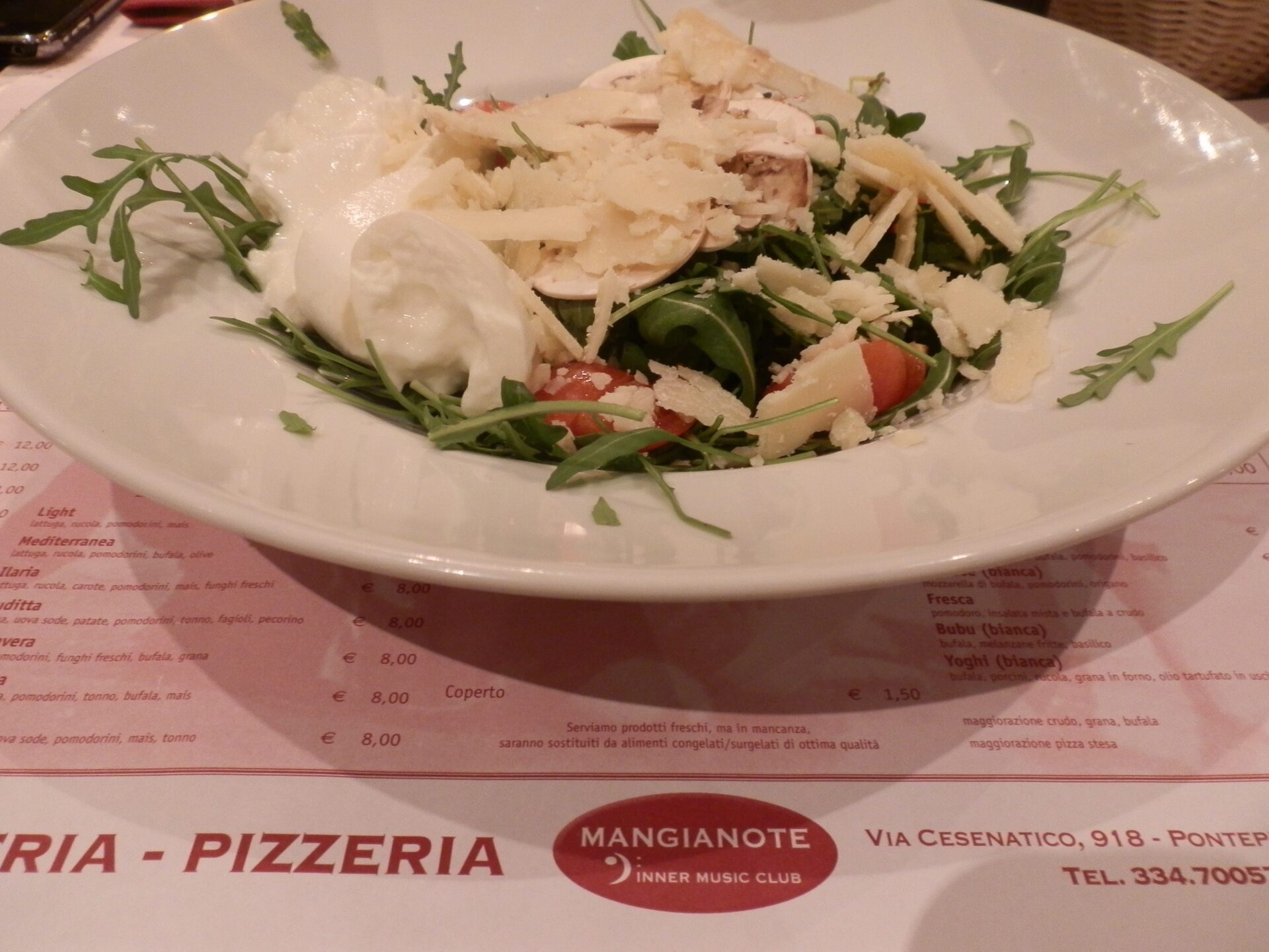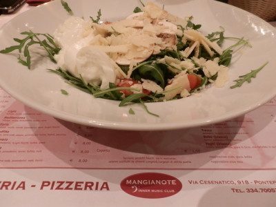 Cosa si mangia al Mangianote? Tutto. Io ho provato, pizza, carne e insalata. Tutto molto buono, la pizza è gustosa, l’insalata decisamente leggera e abbondante, la carne non sono nemmeno riuscita a finirla. I prezzi non sono affatto alti anche perché siamo a Cesena e nemmeno troppo in centro, anche se il locale è sempre piuttosto frequentato. Durante le serate di calcio c’è una saletta più in disparte dove possibile seguirle senza perdersi il karaoke in sottofondo.