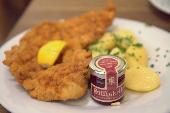 Piatti forti sono quelli della cucina tirolese (wurstel in tutte le salse, zuppe di ogni genere), uniti a quelli di più generica estrazione continentale e mitteleuropea (con patate sotto qualsiasi forma) e alle schnitzel alla viennese, un must-have.