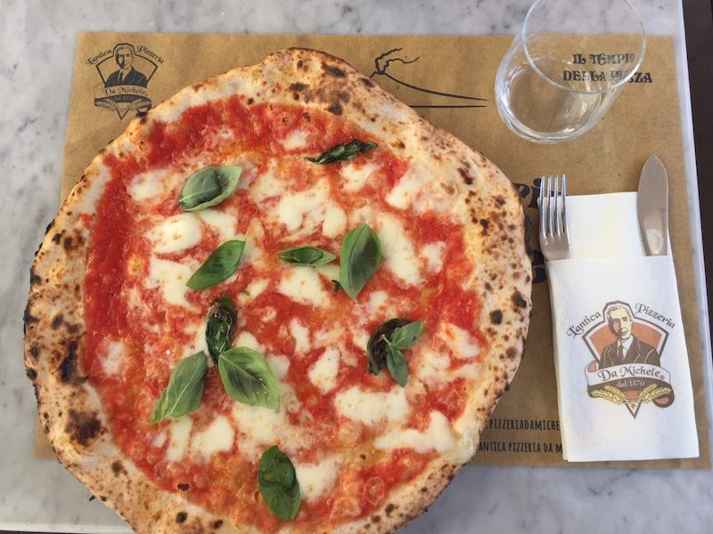 La storia della Pizzeria da Michele è dalla loro parte, infatti dal lontano 1870 fanno la pizza a Napoli. Possono essere scelte solo Marinara e Margherita, per far sì che venga esaltato gusto e genuinità, senza aggiunta di Papocchie (cito liberamente dal loro sito ufficiale), in napoletano altri ingredienti. Nella sua permanenza a Napoli, Diego Armando Maradona, non uno qualunque per i napoletani, ha mangiato spesso la pizza da Michele.