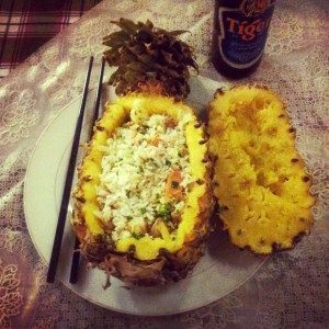 I profumi sono quelli della cucina vietnamita classica: delicate zuppe in agrodolce, Pho e riso in tutte le sue declinazioni. Il mio preferito è senza dubbio il riso di funghi e verdure servito nell’ananas fresco (vedi foto!) una vera delizia. Ottimi anche gli hot pot di pesce e le specialità cucinate nel tipico stile di Hanoi. Per accompagnare la cena consiglio di ordinare la birra Tiger, più gustosa della classica birra Saigon.