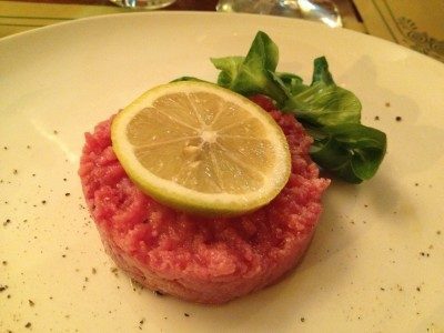 Il menù propone 4,5 piatti per portata e tutti sono della cucina piemontese, anche se la cosa migliore da fare è farsi consigliare dai proprietari, anche perché ci sono dei piatti del giorno che non si vedono nel menù. Ho assaggiato la carne cruda come antipasto ma anche la zuppa del giorno e lo sformatino di formaggio piemontese. Inoltre per secondo uno stracotto al barolo con patate al forno, una vera delizia. Una buona bottiglia di barolo e acqua, niente dolce, solo caffè per finire.