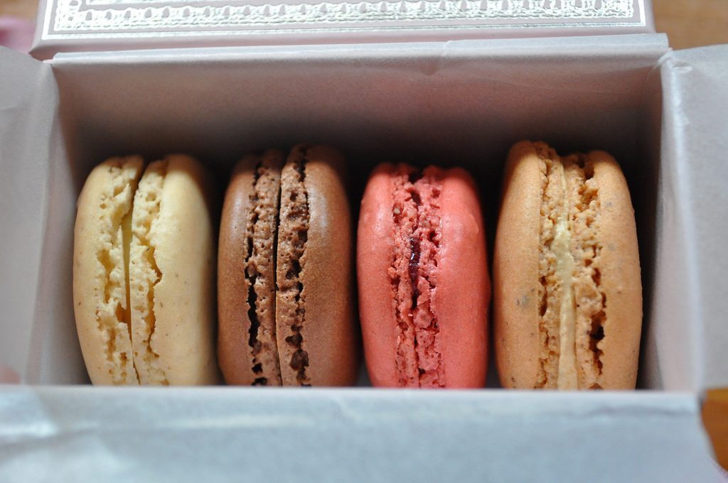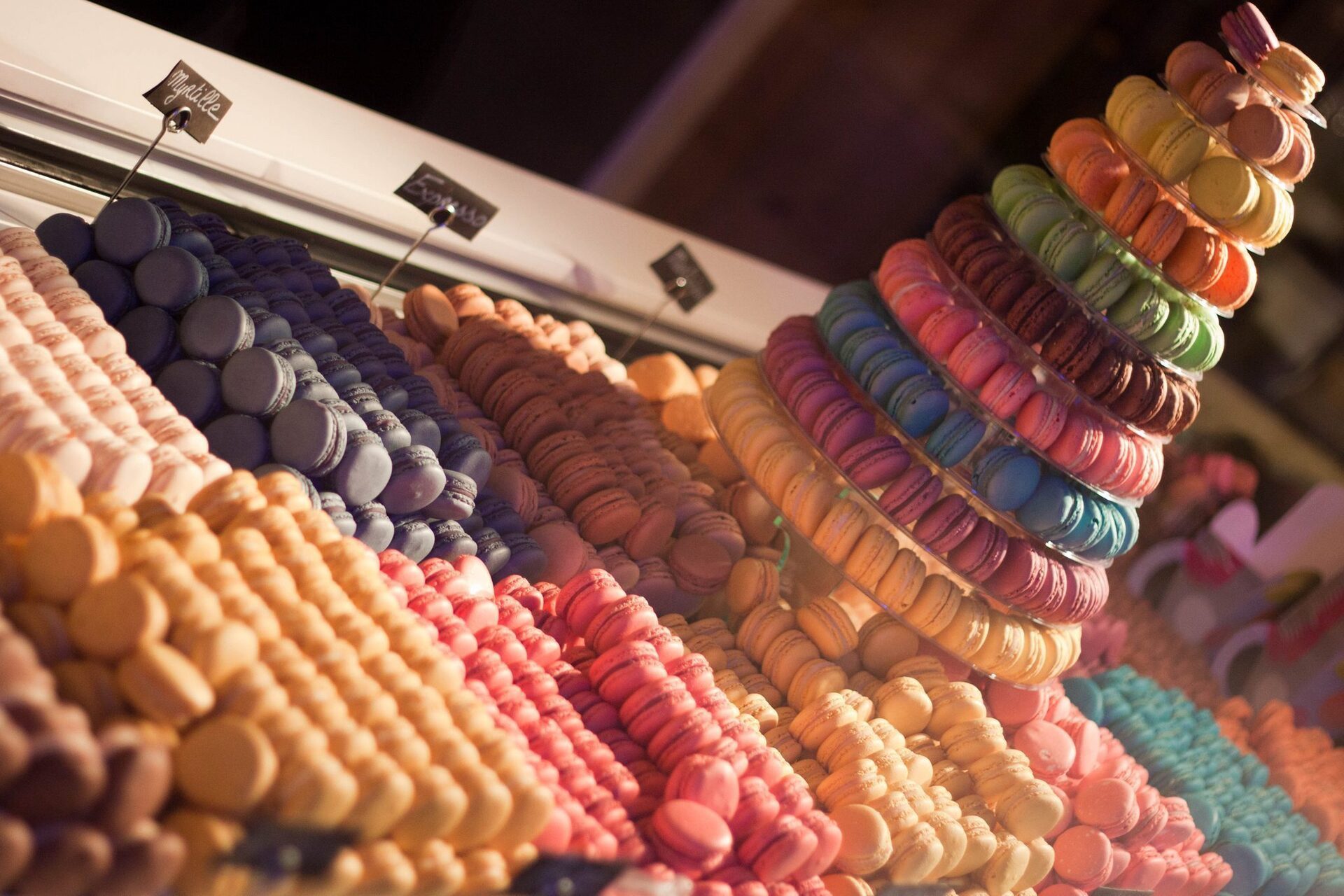 Colorati, eleganti e sfiziosi: i macarons sono una delle specialità culinarie più iconiche di Parigi. Una prelibatezza rotonda, un piccolo sfizio formato da due gusci di meringa alla mandorla e un ripieno di crema al burro, marmellata o crema ganache. I più famosi sono quelli di Ladurée: il macaron, così come lo conosciamo oggi, è stato creato all’inizio del XX secolo da Pierre Desfontaines, proprio della maison Ladurée. Da manuale quelli, paradisiaci, di Pierre Hermé. Bellissimi, coloratissimi e creativi, sono sinonimo di pasticceria chic, raffinata ed esclusiva: spesso, fin dal display in vetrina, più che dolci somigliano più a preziosi monili degni di una gioielleria, anche per quanto riguarda il prezzo. I minuscoli macarons-gioiello arrivano a costare anche più di 2€ al pezzo.
