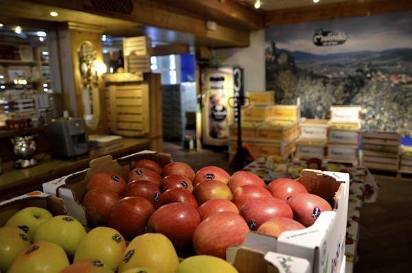 Mela Melinda si trova a pochi km da Trento in una struttura piuttosto grande dove svolgono diverse attività. Al piano superiore si trova un ampio salone dove immagino si svolgano riunioni dello staff e quant’altro, mentre al piano terra oltre al punto vendita anche diversi ambienti dove si svolge tutta la procedura del controllo qualitativo, e non solo.
