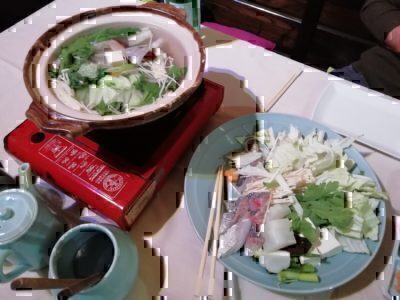 La simpatica proprietaria e tutto lo staff vi aiuteranno in questa non semplice impresa. Primo ostacolo fra tutti, regolare il fornello affinché il brodo si trovi all’esatta temperatura (non dovrebbe bollire!). Vi verranno forniti tutti gli strumenti necessari: del brodo in più da aggiungere man mano che si esaurisce quello nel nabe, colino, mestolo e bacchette per la cottura degli ingredienti e la salsa di accompagnamento. Le verdure e il pesce, cuocendo in un brodo neutro, mantengono quasi inalterato il loro sapore. La salsa a parte (simil soia) dava un tocco di sapidità al tutto anche se, personalmente, ho apprezzato di più il sapore pieno degli ingredienti così com’erano, al naturale. Una serata alternativa.