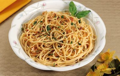 Quello che più mi è rimasto impresso, sopratutto al palato, è stato il primo: uno spaghetto quadrato aglio, olio e peperoncino, insaporito con acciughe e mollica di pane tostata che dava quel tocco di croccante, davvero da leccarsi i baffi, anche se non li ho.