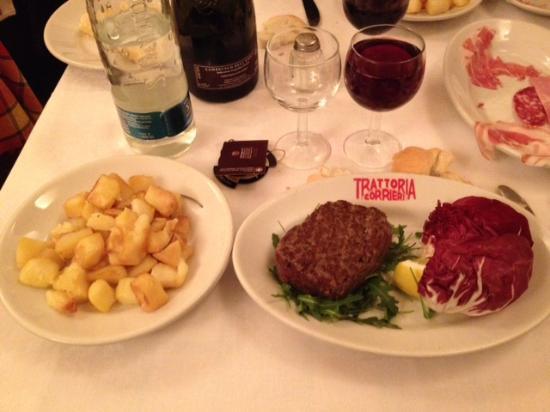 La Trattoria dei Corrieri accoglie gli ospiti all’ingresso con cestini pieni di torta fritta e distese di tortelli tricolore. Appena entrati si è accolti dallo spettacolo degli chef dietro le quinte di una vetrata e si ha così la possibilità di sbirciare nella cucina e iniziare a degustare la cena. Situata in pieno centro a Parma, in Via dei Conservatorio, è una delle trattorie storiche della città, al suo interno conserva ritratti e foto in bianco e nero, mobili in legno massiccio e arredamento rustico tipico di una vecchia trattoria con sedie di paglia, tovaglie a quadrettoni e in bella vista grandi affettatrici rosse d’epoca pronte ad allestire piatti di salumi estemporanei.