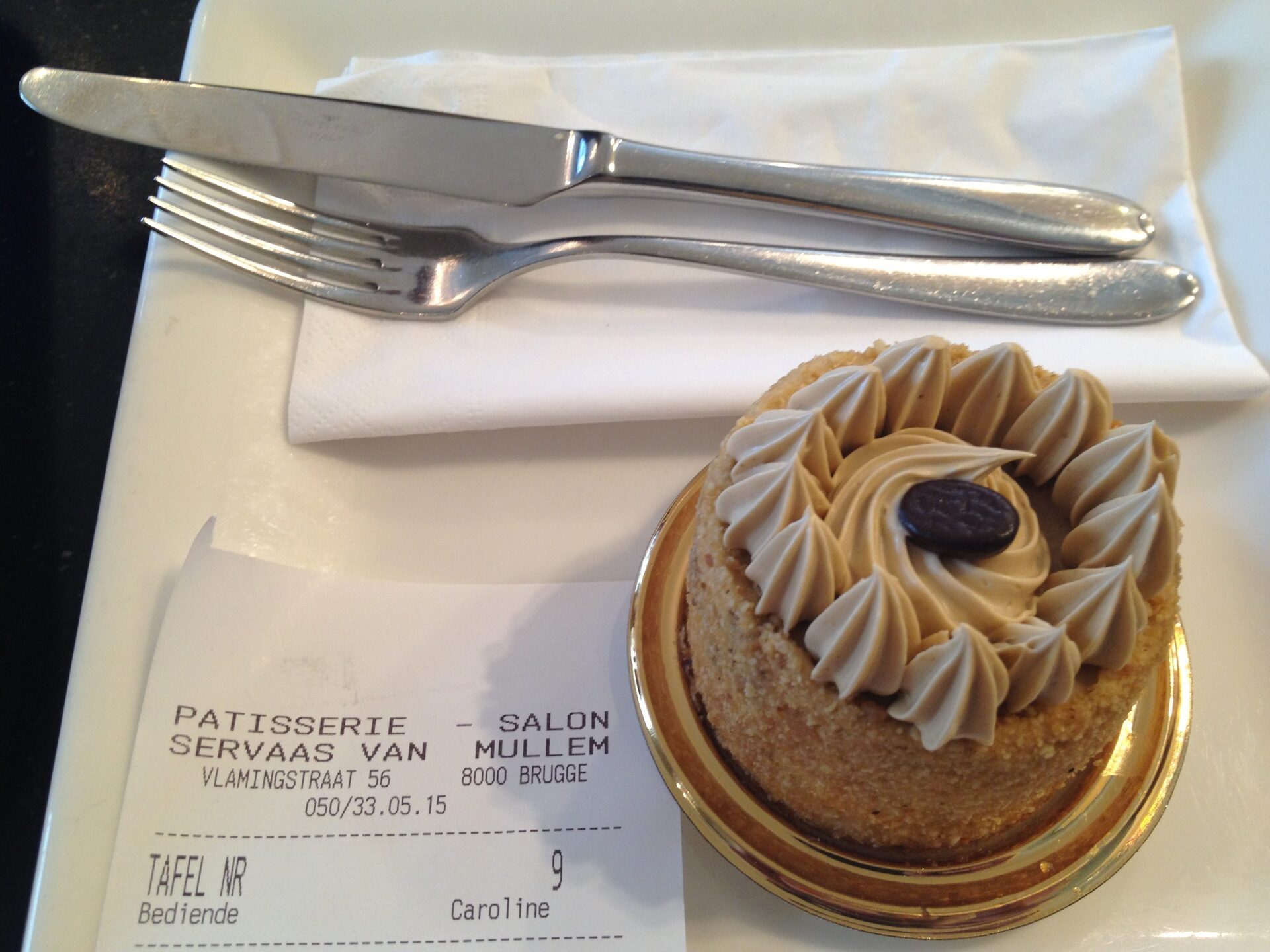 Patisserie Salon Servaas Van Mullem è una pasticceria molto quotata a Bruges. Ogni giorno qui si trova il quasi tutto completo, non c’è mai un posto libero, ma se non volete prendere e portare via e volete fare una decina di minuti di fila (non di più), bè, credo ne varrà la pena. Almeno per me ne è valsa la pena.
